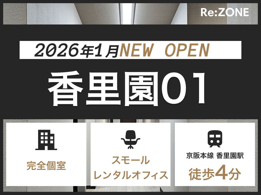 Re:ZONE香里園01は、完全個室・登記可能のレンタルオフィス。